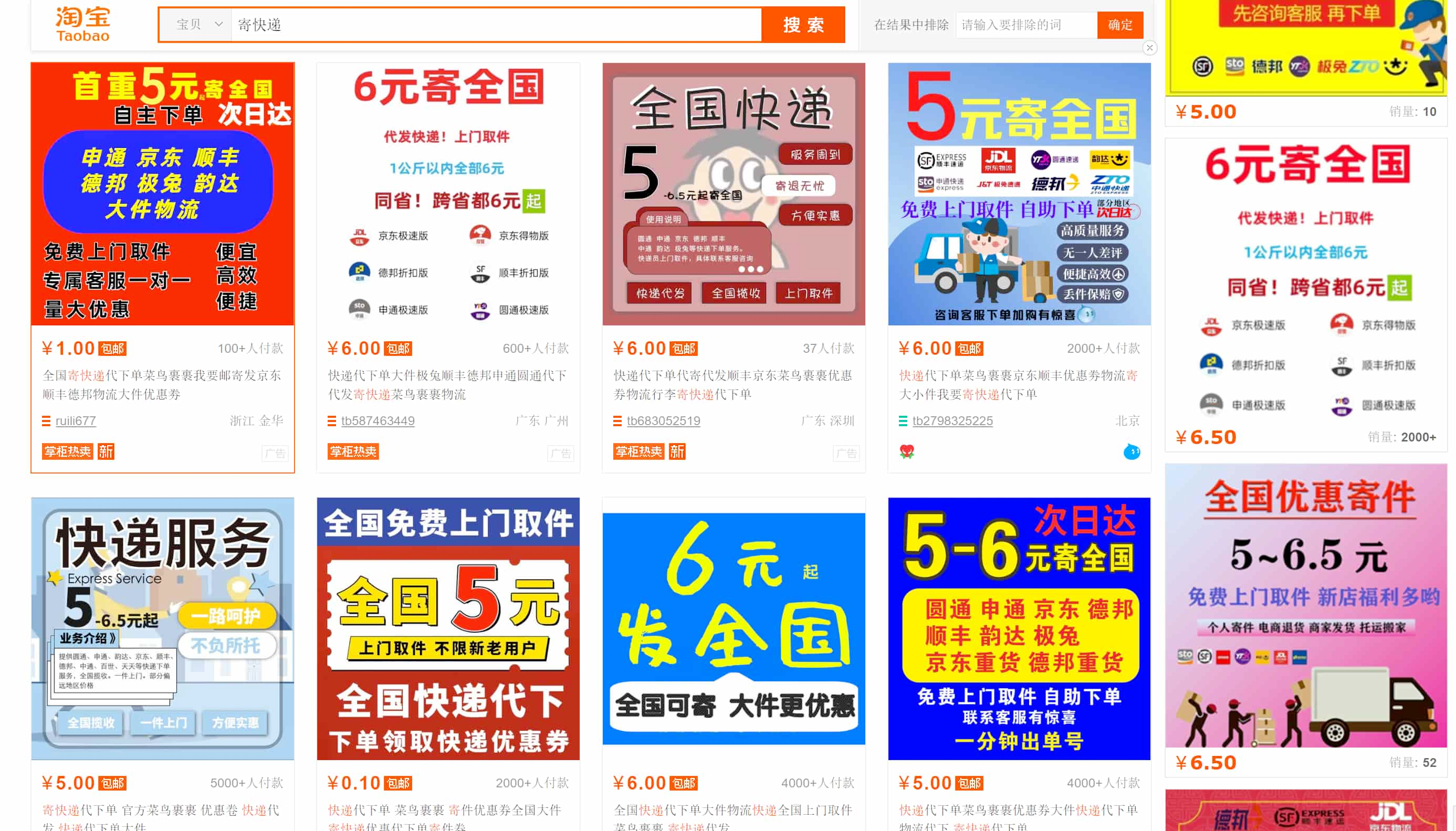 大家也可以去淘宝闲鱼上搜一下关键词,快递代下,可以看下他们的一些销售和收货数量。我们按照1元的利润来计算,做的好的商家,妥妥的一个月上万了,但是这点量对于我国目前的快递量,简直九牛一毛。